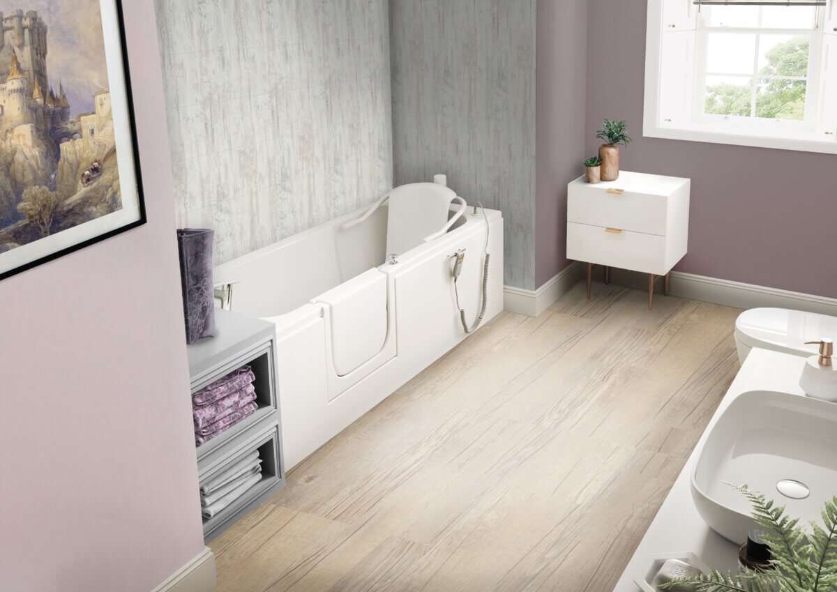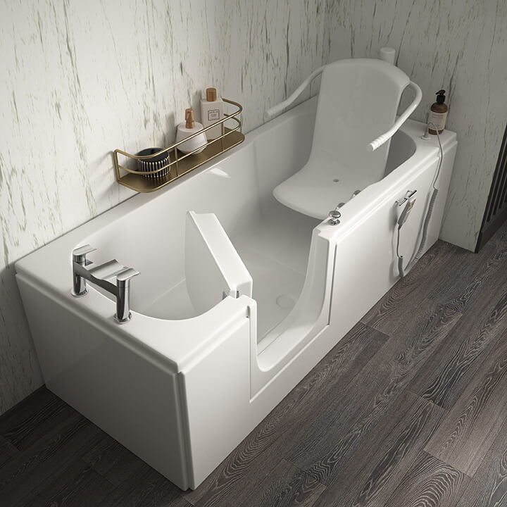 The Serenity combines the relaxing nature of a traditional full-size bath with the easy-access features of a walk-in bath. For peace of mind, the Serenity also has a slip-resistant powered seat to lower you into and out of the water at the push of a button. It is especially suited to those who have limited upper body strength or who are fearful when getting in or out of a normal bath.